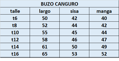 Seleccionar la prenda según la tabla de talles.