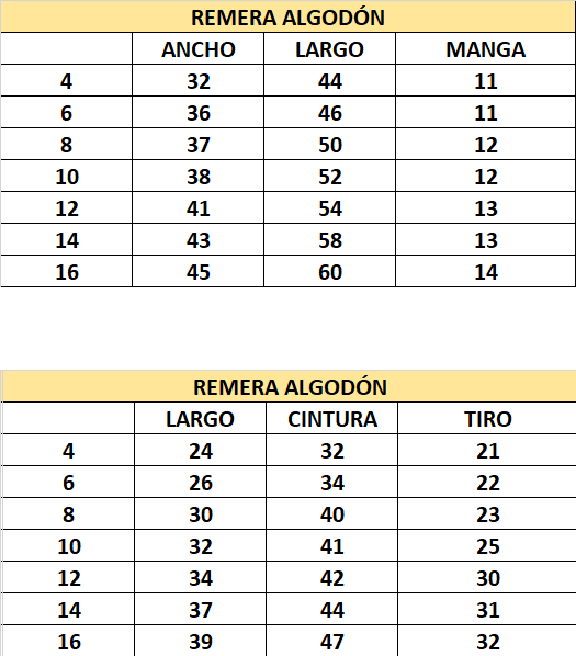 Seleccionar siempre la prenda según la tabla de talles.