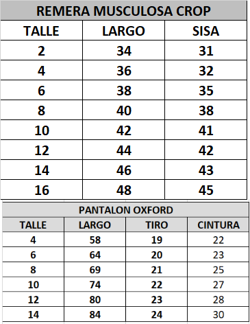 Seleccionar la prenda según la tabla de talles. Trabajamos con multimarcas, cada artículo tiene medidas propias. Las medidas son aproximadas, pueden tener un margen de 1cm, según la costura.