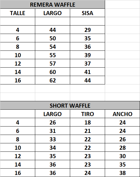 Seleccionar la prenda según la tabla de talles.