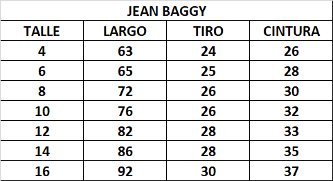 A continuación la tabla de talles: